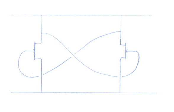 Notice that if there is a current at C, it would keep itself like that, and if there is no current at C, it would also keep itself like that. If you put a very large current across it, you can cause it to flip around so it would be the opposite of what it had been. Therefore, you can change what is in the memory.